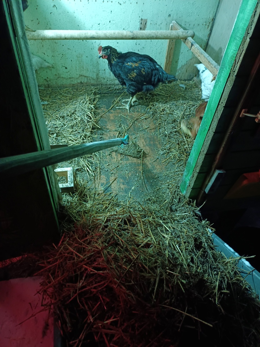 А ещё, пока тепло (-4⁰) замечено было, что у цыплят-октябрят довольно сыро. Солома как-то не правильно работает. Впитывает влагу постоянно. Удаляю. Чищу "конюшни" эти.