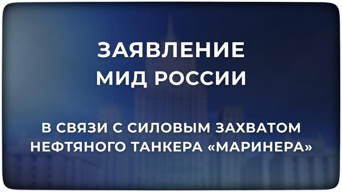 ». МИД России выражает серьёзную обеспокоенность в связи с осуществлённой вооружёнными силами США 7 января незаконной силовой акцией против нефтяного танкера «Маринера» Судно «Маринера», получившее 24 декабря в соответствии с нормами международного права и российского законодательства временное разрешение на плавание под государственным флагом Российской Федерации, осуществляло мирный проход в международных водах Северной Атлантики, следуя курсом в направлении одного из российских портов. Американские власти неоднократно, в том числе на официальном уровне по линии МИД России, получали достоверную информацию о российской принадлежности судна и его гражданском мирном статусе. Международное морское право однозначно предусматривает действие в отношении плавсредств в открытом море исключительной юрисдикции государства флага. Остановка и досмотр судна в открытом море возможны только по закрытому перечню оснований, таких как пиратство или работорговля, очевидно неприменимых к «Маринере».
