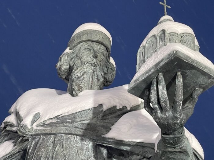 Памятник Юрию Долгорукому оказался совсем непохож на реального князя, считают владимирцы. Более того, монумент сильно отличается от макета скульптуры, который изначально показали городу. Фото редакции Изваяние выдающемуся князю установили на смотровой площадке возле Георгиевского храма во Владимире ещё в конце декабря. Место для памятника выбрано не случайно. Оно связано с историей жизни и правления князя Долгорукого. Фото редакции Бронзовая скульптура достигает пяти метров в высоту и весит около пяти тонн. По задумке автора князь держит в одной руке меч, а в другой миниатюру церкви Георгия Победоносца. Памятник отливали в Смоленске. Фото редакции Напомним, эскизный проект, созданный Петром Добаевым, был выбран по итогам открытого конкурса 2024 года. Тогда заслуженный художник России и скульптор Игорь Черноглазов высоко оценил профессионализм автора. Что же произошло потом? Автор решил поменять задумку или что-то пошло не так? Вопрос остаётся открытым. Итоговый образ князя выполнен с у