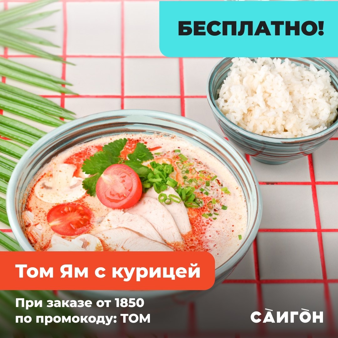 🔹 Дарим Том Ям с курицей при заказе от 1850р по промокоду: TOM