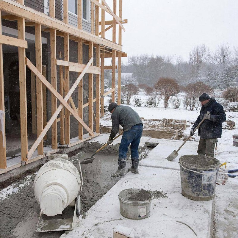 ? Добрый вечер, уважаемые подписчики! Потихоньку выходим с новогодних праздников. Первый пост в этом году был навеян одним застольным разговором, и сегодня мы поговорим о том, как строить из бетона в холодное время года. Ведь в регионах с холодным климатом зима — не повод останавливать стройку. Современные технологии позволяют проводить бетонные работы даже при отрицательных температурах. Основная проблема при зимнем бетонировании — замерзание воды в бетонной смеси. Это может привести к остановке процесса гидратации цемента и ухудшению прочности бетона. Чтобы избежать этого, используются специальные методы и добавки. Вот основные аспекты зимнего бетонирования: 1. Подогрев бетонной смеси. Перед заливкой бетонную смесь подогревают до температуры 30–40 °C. Это помогает компенсировать потерю тепла при транспортировке и укладке. Используются специальные установки для подогрева воды и заполнителей (песка, щебня). 2. Использование противоморозных добавок. В бетон добавляют химические в