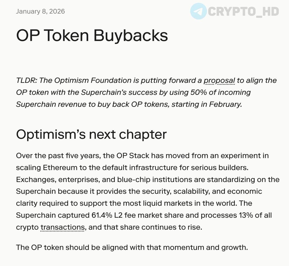 🔥 #OP В Optimism собираются запустить программу обратного выкупа OP с рынка – анонс