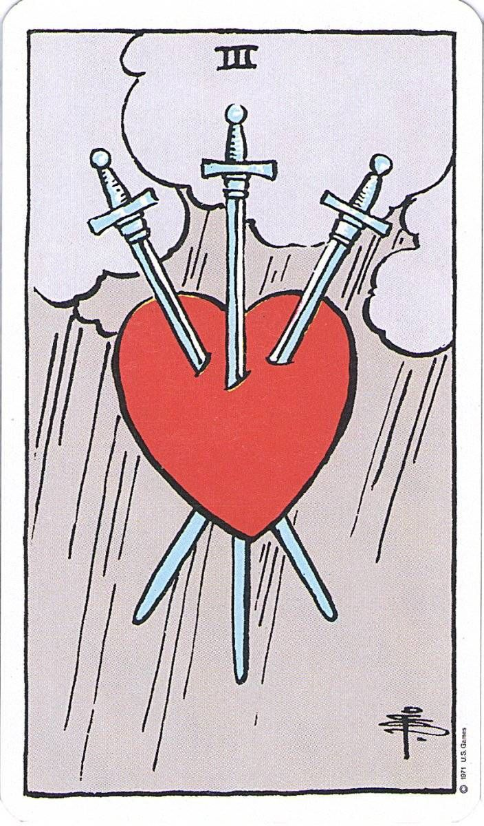 Конечно, Тройка мечей не обязательно должна считываться, как ужасающая картина на карте Райдера-Уэйта, изображающая пронзенное сердце. Понятно, что именно изображение во многом закрепило за картой такую негативную репутацию.