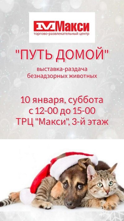 На следующей неделе, 10 января, в ТРЦ «Макси» пройдет выставка-раздача безнадзорных животных «Путь домой». ⬇️ Подписывайтесь на «Рабочий путь», чтобы всегда быть в курсе! 💙 «РП» в MAX