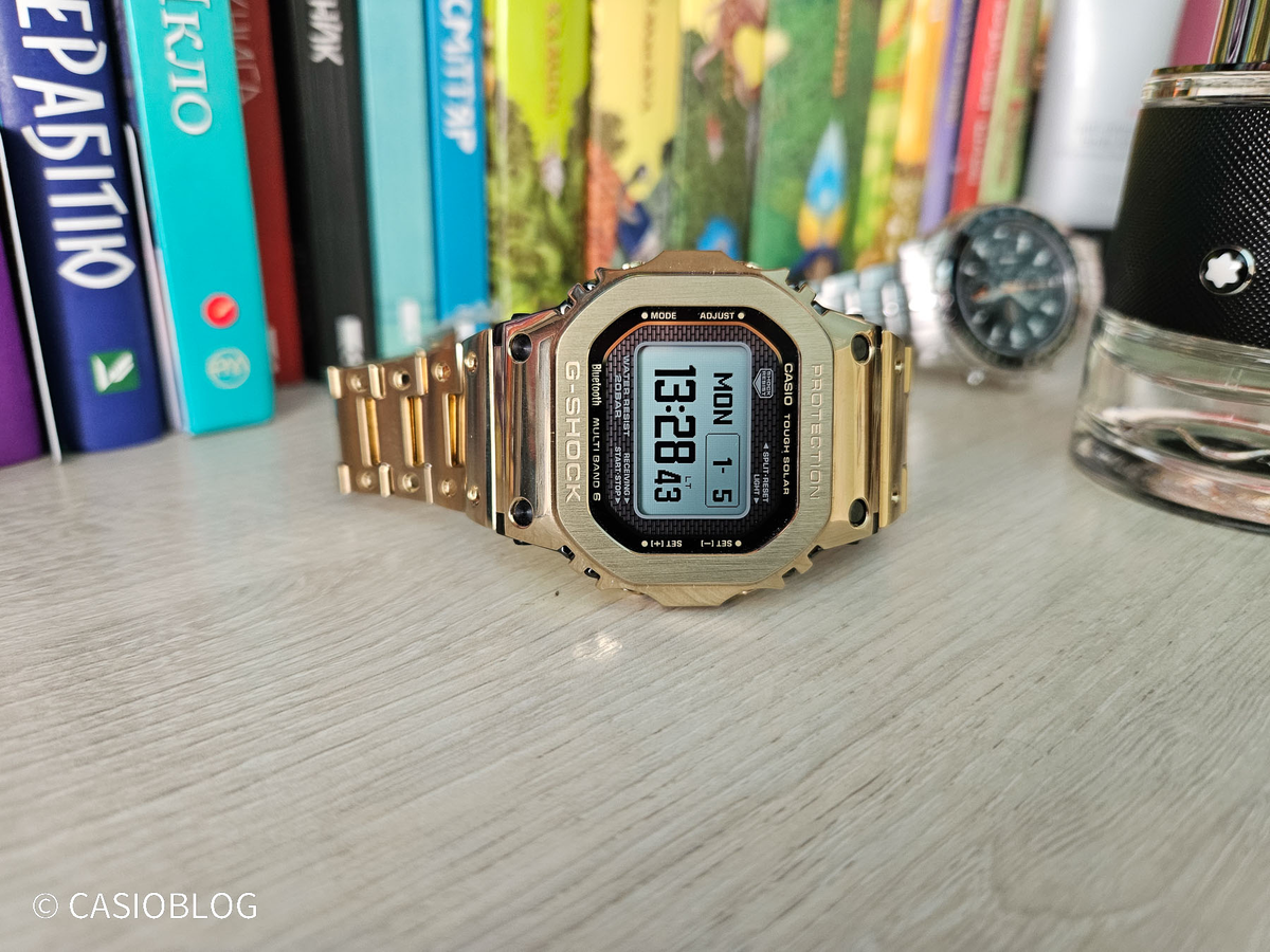 С функциями уже буду завершать. Как видите, прорывного с MIP дисплеем ничего не появилось, однако свежесть все равно присутствует. Часы GMW-BZ5000GD-9 нельзя назвать и примитивными, ведь солнечное питание, радиосинхронизация, BLUETOOTH – просто потрясающие технологии для наручного “товарища” в традиционном квадратном форм-факторе.