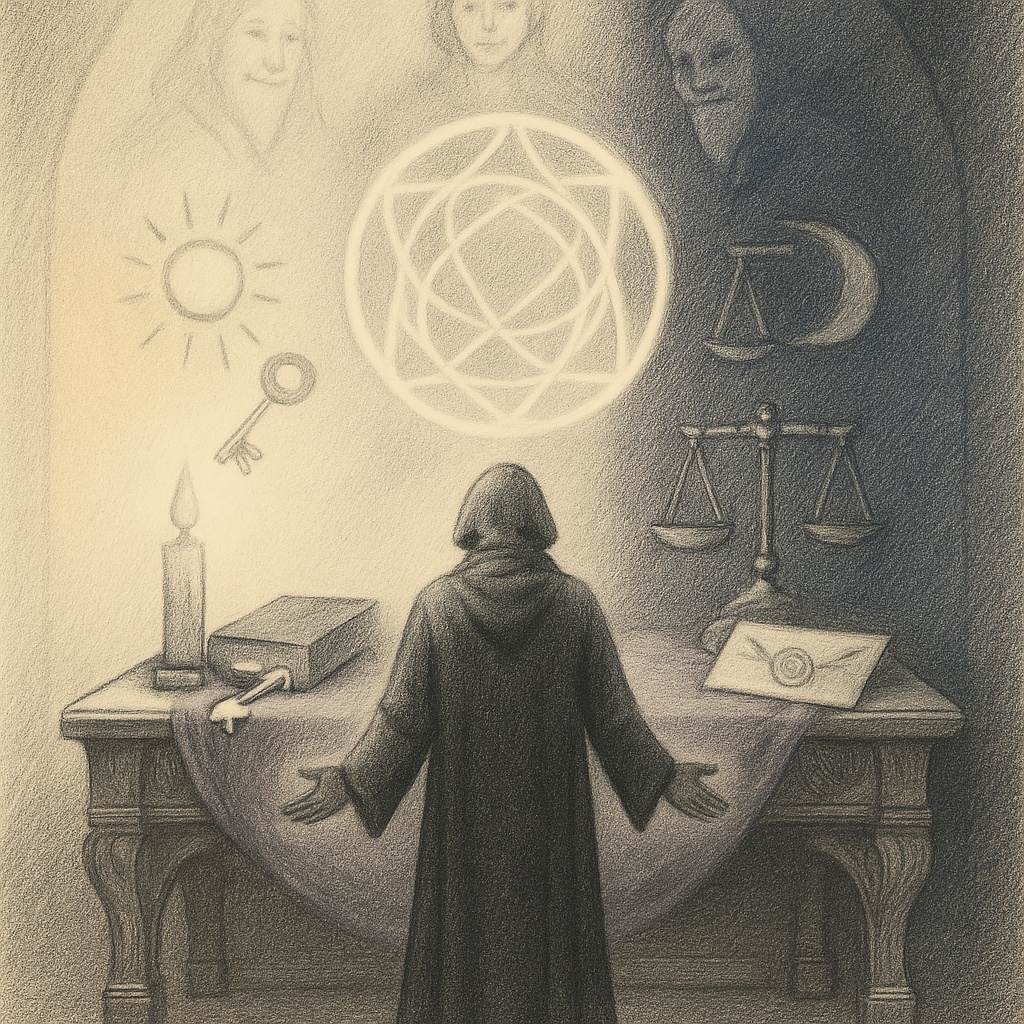 И вот только потом кладем обряженный вольт на Алтарь перед Образом Князя и начинаем просить о Дозволе и Благословении на Действо.