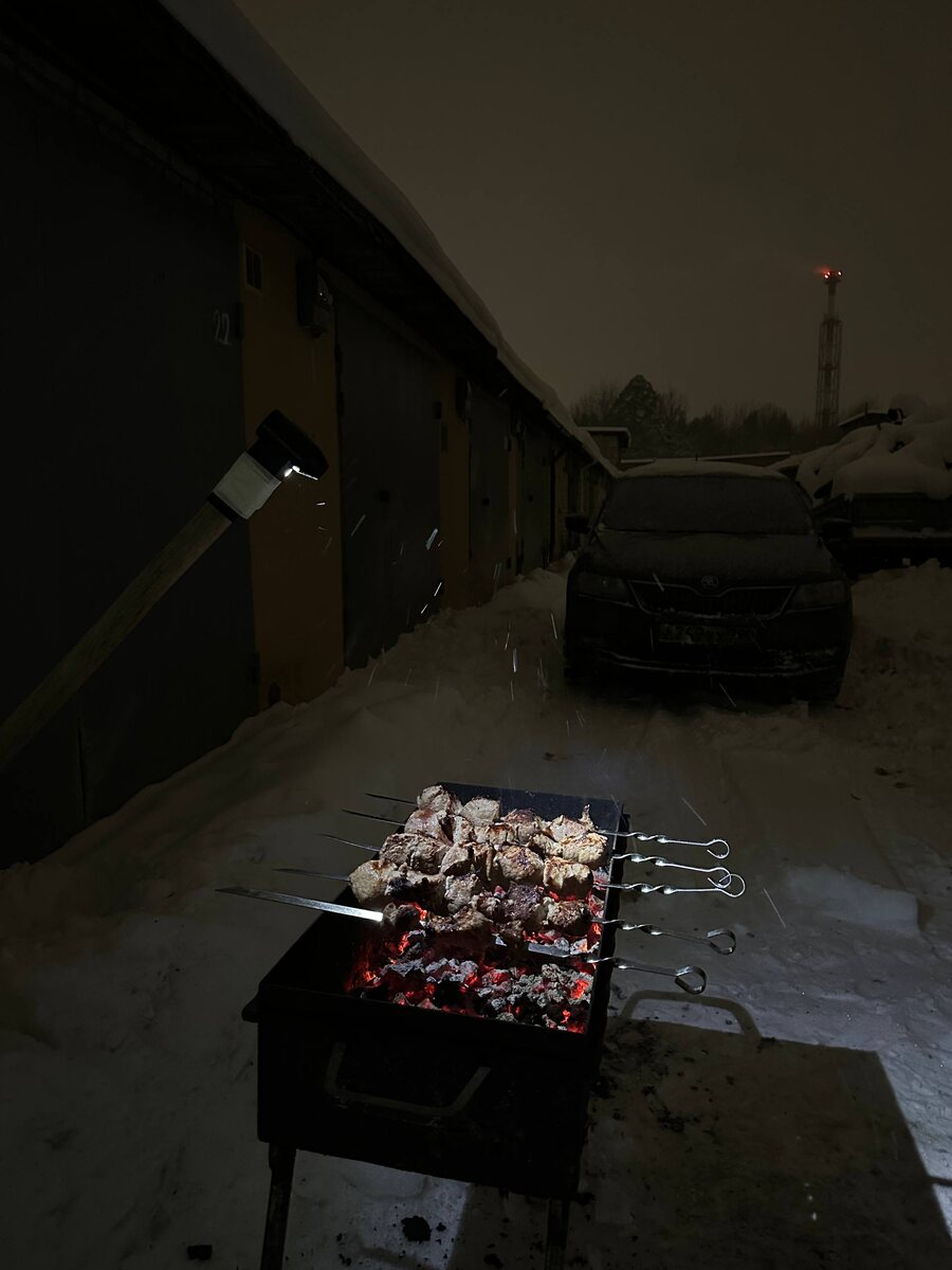 ? У меня дебют по жарке шашлыку ) С пацанами собрались в гараже, пробуем полировку фар