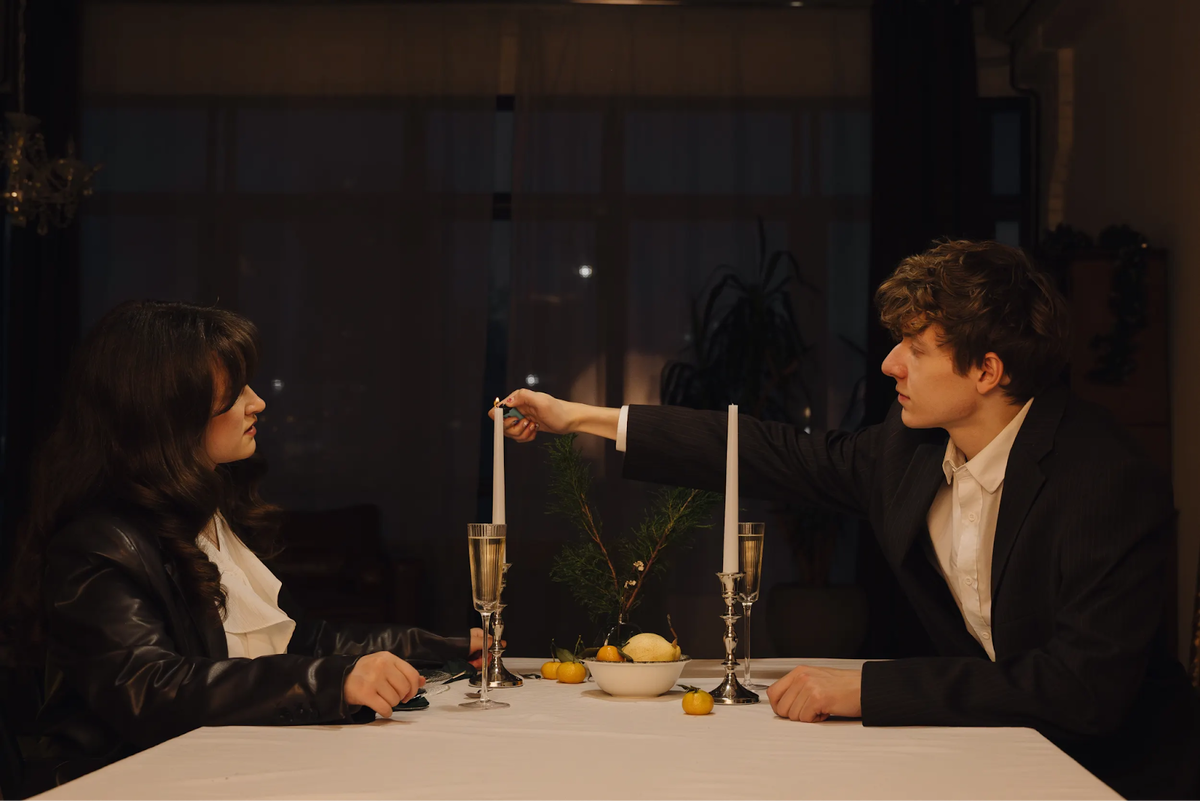 DIY-гайды популяризируют декор из подручных средств: свечи с самодельным орнаментом, «ёлка» из мандаринов, гирлянды из веток в банках. Один из ярких примеров – съедобная и ароматная елка из мандаринов. Натуральность в тренде: апельсины, хвоя, сухие цветы и корица – не только в композициях, но и на самом столе. Даже простые столовые приборы можно украсить тканевой салфеткой в необычной складке или ярким бантиком.