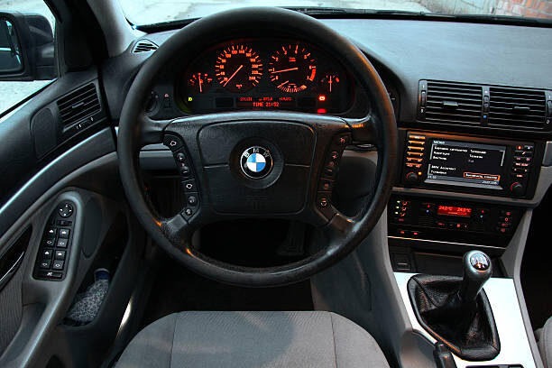 Салон E39 выполнен из качественных материалов: кожа, дерево, мягкий пластик. Отличная шумоизоляция и удобные сиденья делали автомобиль идеальным для дальних поездок.