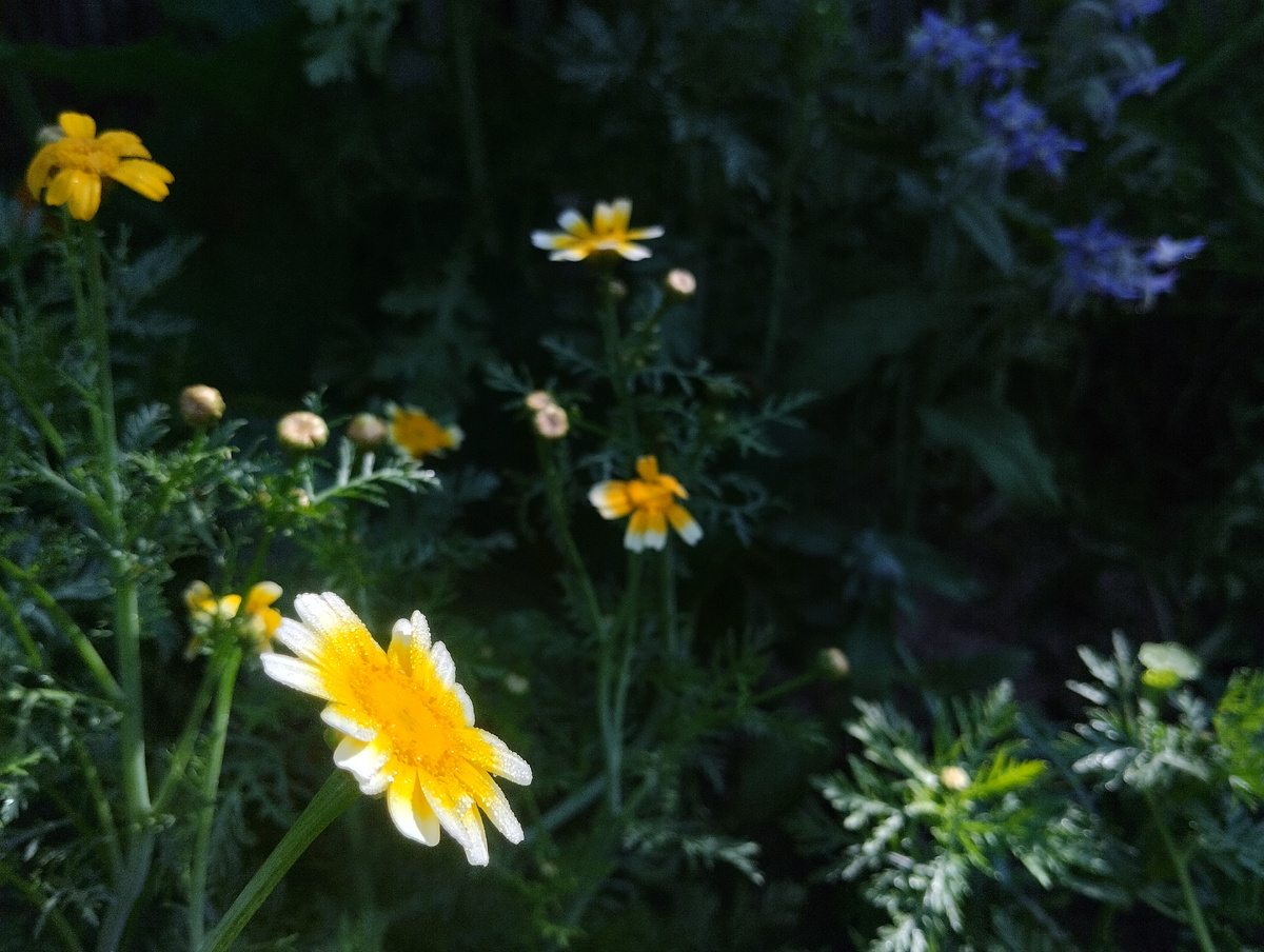 Может быть всё равно посею - в цветник, чтобы не остаться без специй и красивых жёлтых лепестков в травяном чае. Хочу заодно попробовать махровую смесь декоративной хризантемы корончатой.