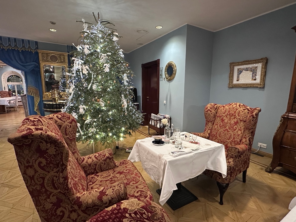 Декабрь оказался достаточно плотным на разнообразную культурную программу и новые открытия. И побывала я на чаепитии! Помните, как в "Алисе в стране чудес"? Только Безумного Шляпника там не было. Никогда б не подумала, что и сейчас так можно - а, оказывается, можно! Я попала на чаепитие с ребятами из Медиаразведки, но можно и самим. Лучше забронировать столик (если это свидание или встреча с подругами, например, и хочется быть уверенным в успехе вечера), но можно и так зайти. Публикация не является рекламой, ни к чему не призывает и выражает мой субъективный обзор в рамках постоянной рубрики "Еда в Петербурге" Место - Чайная Гостиная в отеле Мойка, 22. У них есть ресторан на крыше, но для чаепития не туда. Как зайдешь в лобби отеля - налево, там чайная комната. Да, чаепитие удовольствие не из дешевых, и обойдется в несколько тысяч. Но уютно посидеть вечером с красивом и вкусном месте иногда того стоит! В меню есть несколько ценовых вариантов: мой вам совет - берите тот, что чуть деше