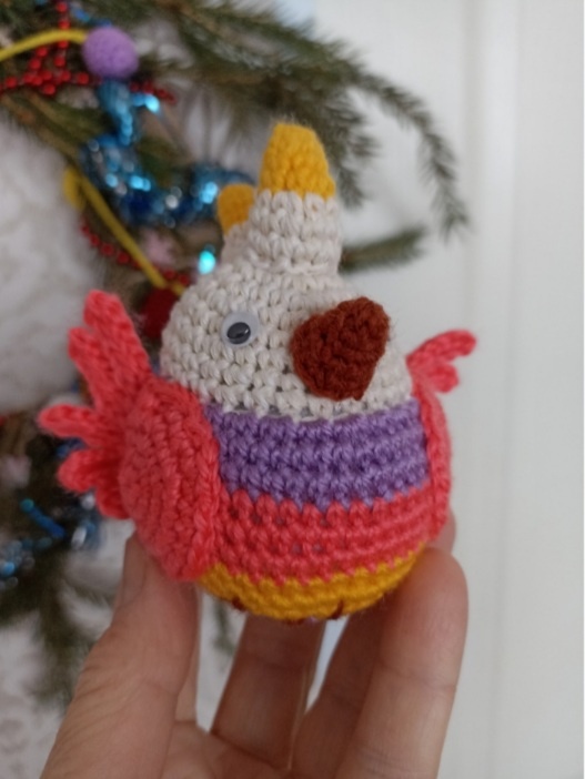 Я ж всё таки вязала и создавала попугайчика чтоб он радовал всех а не только меня.