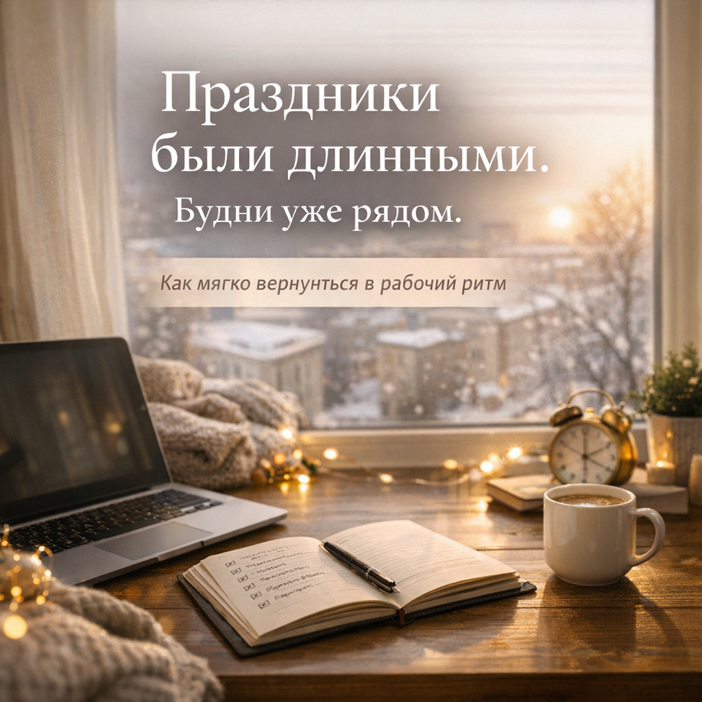 Что важно сделать за 3 дня до первого рабочего дня и что я запланирую на первый рабочий понедельник в этом году Длинные праздники — это всегда иллюзия бесконечного времени. Сначала кажется, что впереди целая вечность, потом — что ты только-только вошёл во вкус, а календарь уже безжалостно подмигивает рабочими буднями. В этом году праздники у меня получились одновременно и насыщенными, и полезными: удалось выдохнуть, привести мысли в порядок, кое-что спланировать, кое-что — отпустить. Но есть одна важная вещь, которую я давно для себя поняла: возвращение в рабочий ритм начинается не в понедельник утром, а за несколько дней до него. Если эти дни прожить осознанно, первый рабочий день перестаёт быть стрессом и превращается в логичное продолжение жизни. Рассказываю, что я делаю за 3 дня до первого рабочего дня и как планирую первый рабочий понедельник этого года. Это день без героизма и рывков. Его задача — создать ощущение контроля. Что делаю: В этот день я не планирую ничего нового. Я у