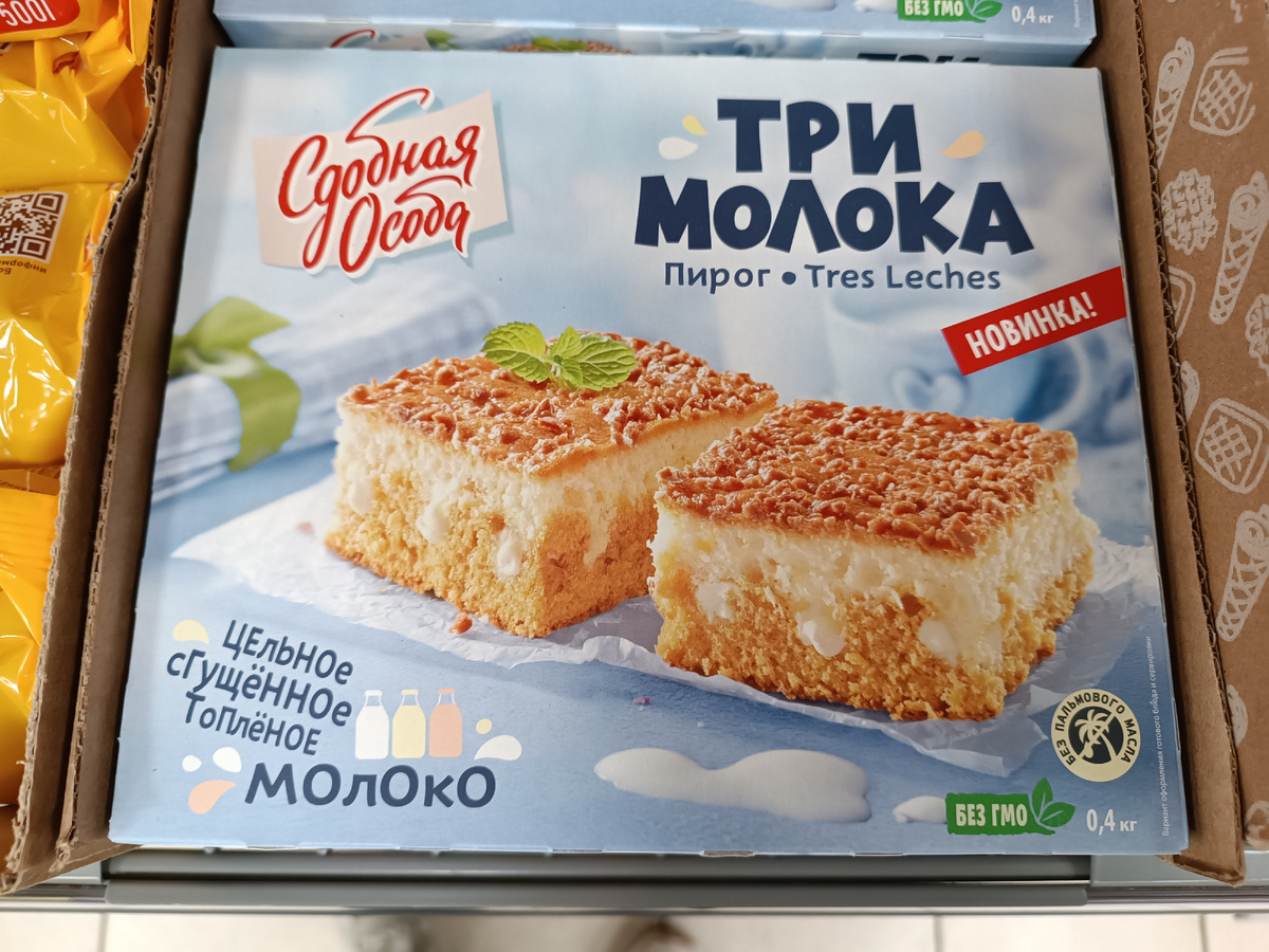 Начал я, как водится, с самого важного – со сладостей. Тут "Чижик" приятно удивил. Вроде идёшь за хлебом, а находишь тортик, который хрен где ещё увидишь. Пирог "Три Молока" – звучит круто! Правда, состав, как обычно, "богат вредными растительными маслами и сахаром" (цитата!). Ну, да ладно, один раз живём! Главное – не злоупотреблять. Это вам любой мужик с "инсулинорезистентностью" скажет.
