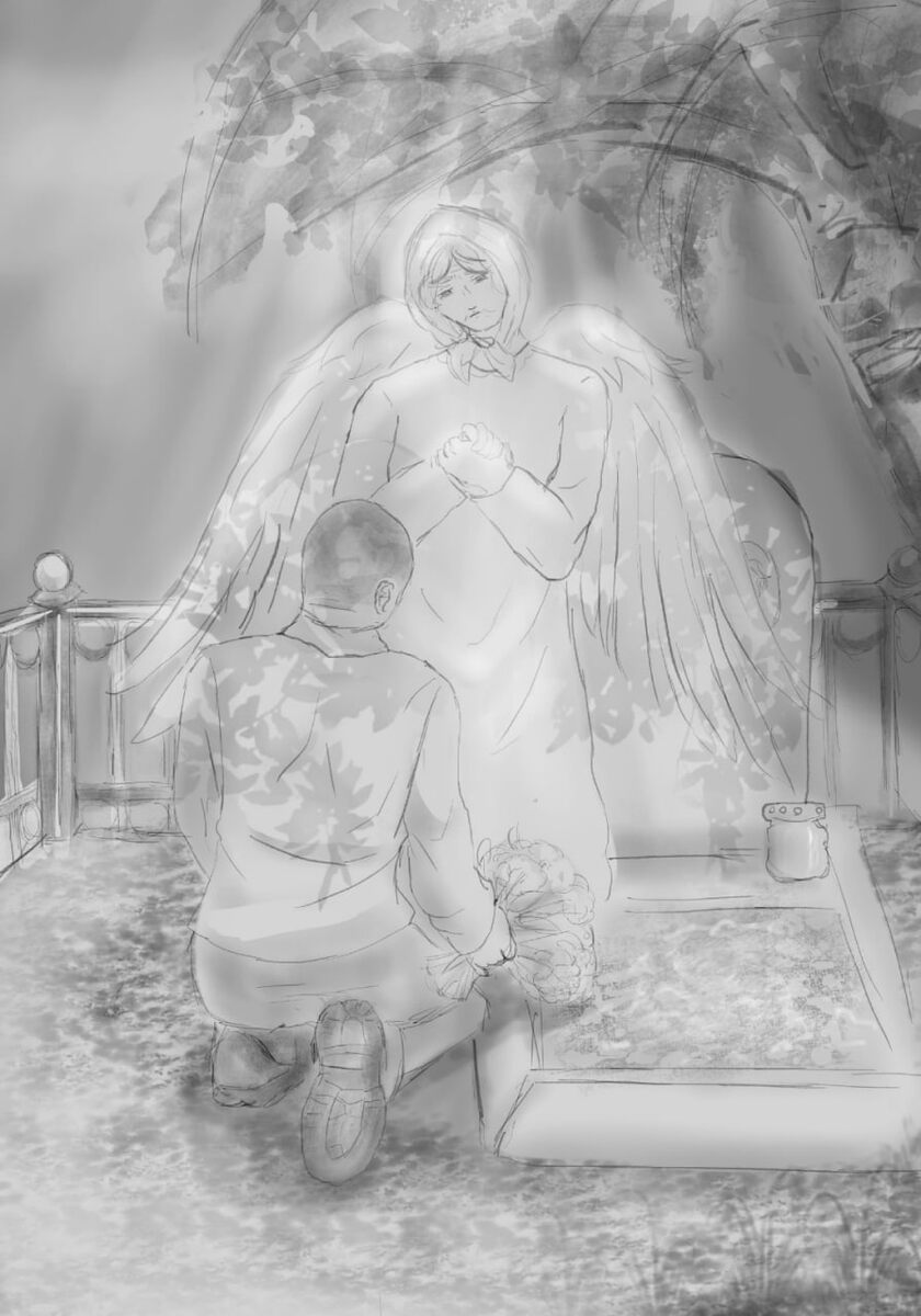 Привела меня к тебе дорога, Сквозь дожди я шел так много лет. Не суди меня сегодня строго, Дай поведать мой тебе секрет. Рассказать хочу тебе о многом, Так хочу услышать твой совет. Только вот душа твоя - пред Богом, Предо мною - милый твой портрет. Я рукой к могилке прикасаясь, Будто бы коснусь тебя рукой. Пред тобою, милая, покаюсь, От войны я стал совсем другой. Где и как судьба меня кидала, Смерть бродила, будто бы за мной. Раны, шрамы тело покрывая, Заполняли душу пустотой. И сегодня я от жизни пьяный, Может, от судьбы своей иной... Зашиваю снова свои раны, Для души ищу своей покой. Будто бы души тепла касаюсь, Ощущаю в сердце благодать. Над могилкой бабушки склоняясь, Я хочу спасибо ей сказать. За мечту, рассказанные сказки, За её простую доброту. В жизнь мою добавленные краски, Что в душе я до сих пор храню. Этого всего мне не хватает, Жизнь моя - дорога, сквозь туман. Как фрагменты мимо пролетает, Не понять, где правда, где обман. С каждым днём всё тает и мерцает, Где