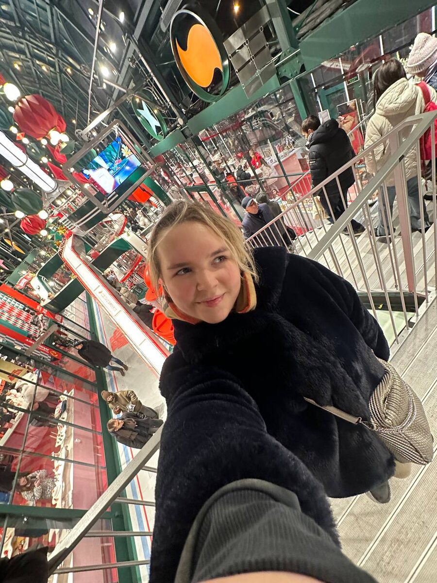 ! «Фабрика подарков» — пространство, где творчество, стиль и волшебство упаковывают в коробки. И эти коробки повсюду! От этого захватывает дух и хочется фотографировать каждый уголок 📸 Здесь есть на что посмотреть и чем заняться: ✨ Локальные бренды: Можно часами разглядывать и выбирать уникальные вещи от крутых российских дизайнеров — от украшений и ароматов до уютных свитеров и предметов интерьера. Идеально для того, чтобы найти тот самый особенный подарок (или сделать подарок себе, любимому). 🎰 Розыгрыш мерча Альфа-банка: Да-да, тут можно выиграть классный мерч! Обязательно поучаствуйте — а вдруг именно вам повезёт? ☕ Фуд-корт с видом на каток: Поднимитесь на второй этаж — и вас ждёт ещё один вау-эффект. Уютный фуд-корт с панорамными окнами и потрясающим видом на каток. Сидишь, пьёшь вкусный кофе или горячий шоколад, смотришь на огни и катающихся... Идеальная зимняя атмосфера! И да, до самого катка я, если что, так и не добралась — слишком хорошо наверху 😭 (и кстати на каток
