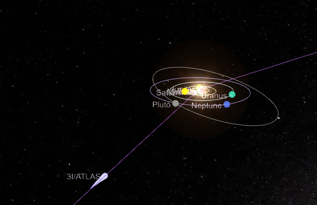 29 октября 2025 года 3I/ATLAS пережил ближайший пролёт мимо Солнца (перигелий). 19 декабря 2025 года максимально сблизился с Землёй, а сейчас уходит обратно в межзвёздное пространство. Но по дороге он очень близко "подойдет" к Юпитеру, особенно к одному из его спутников.