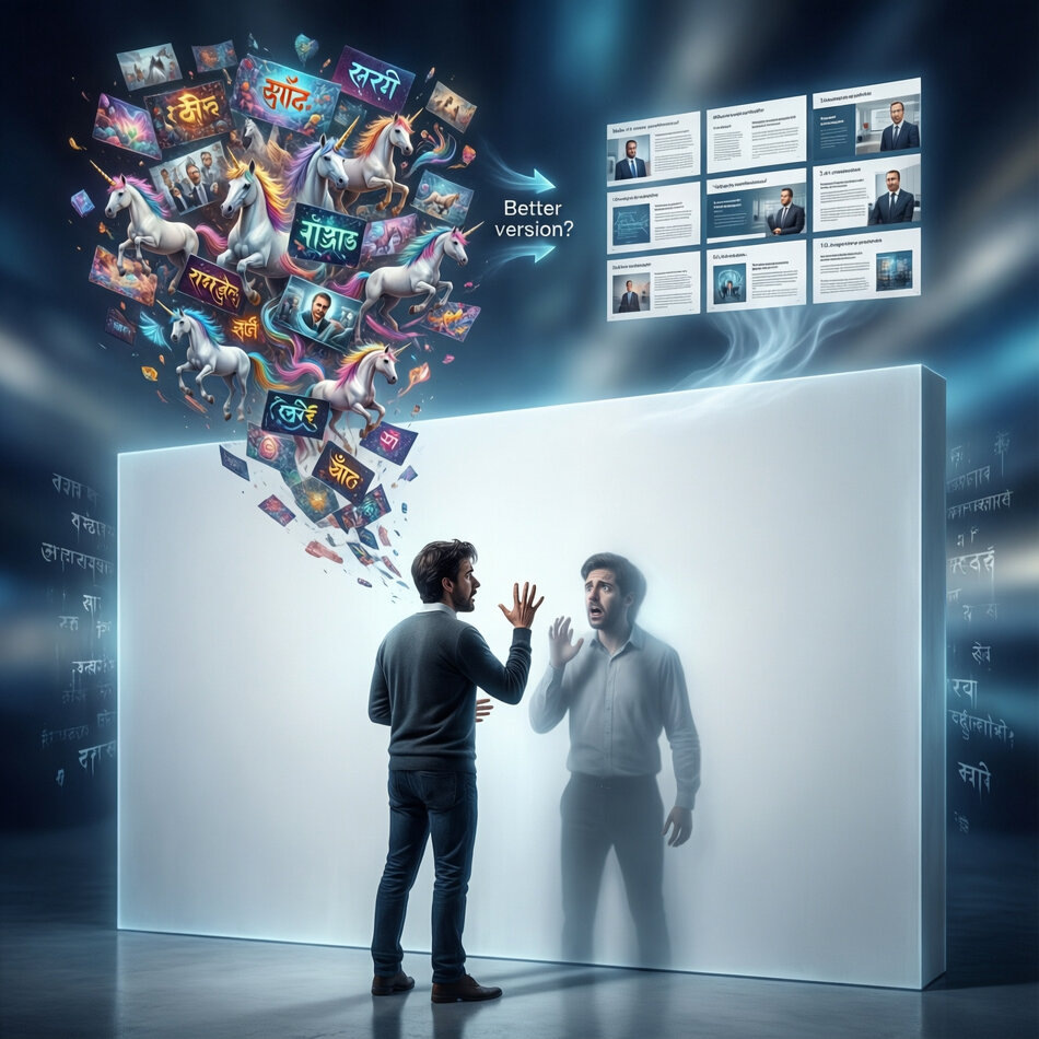 Что помогает: Включить в процесс «человека-переводчика». Не ожидать от машины человечности. Использовать её как гипер-быстрый черновик, как словарь ассоциаций, как генератор вариантов. А диалог, креативную полемику, выбор — оставить для обсуждения с живыми коллегами или с самим собой. ИИ — не партнёр для мозгового штурма, а невероятно богатая библиотека и мастерская под рукой.