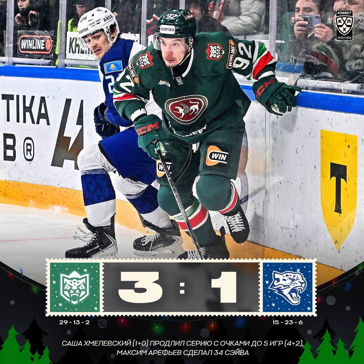 🟢 «Ак Барс» в четвёртый раз в сезоне обыграл «Барыс»!