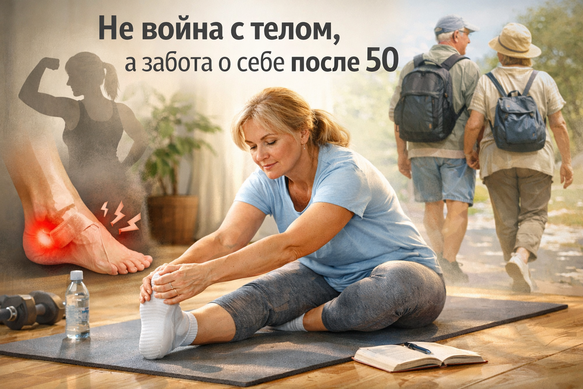 Тело после 50 меняется. И это не новость — мы это все знаем. Новость в другом: самое сложное не лишний вес, не усталость и не боль. Самое сложное — перестать с телом воевать и научиться работать с ним честно, без насилия. Долгое время я не занималась спортом. В прошлом купила пожизненный доступ к Фитстарс, но занималась хаотично, редко, когда было настроение или время. Мне казалось, что попытки хоть что-то изменить — это уже прогресс. На деле результат был минимальный, тело не слушалось, а терпение таяло. В мае 2025 года мы с мужем ездили в Петербург. В один из дней я надела кеды с жесткой пяткой — и окончательно повредила и без того не здоровое ахиллово сухожилие. С того момента боль в пятках стала постоянным спутником моей жизни. Она напоминала: «Ты не подросток, тело изменилось, и оно требует внимания». С началом нового года я приняла решения, которые изменили мой подход к движению: каждый день я делаю зарядку, независимо от настроения и загруженности дня. И это не спорт, как я ран