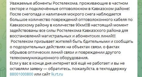 Ответ Ростелекома о ситуации с проводным интернетом у нас в районе.