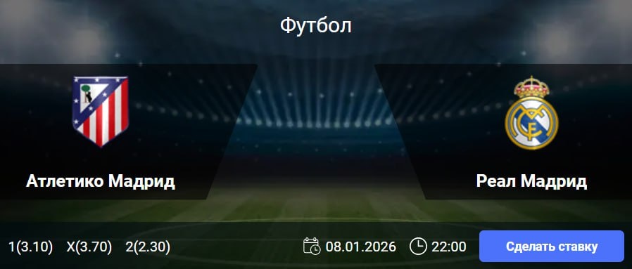 Анализируя выступления клубов, стоит отметить, что «Атлетико» забивал в 20 из 21 последнего матча в чемпионате и Кубке Испании. Однако в конце 2025 года команда Диего Симеоне стала допускать больше ошибок в защите, сохранив ворота в неприкосновенности лишь в одном из пяти последних матчей в национальных турнирах. «Реал», в свою очередь, забивал в 6 из 7 последних игр в Примере и Кубке страны, при этом сыграв «на ноль» только в двух из этих семи встреч. 🎯 Обе забьют (Да) 🎲 кф (1.53) 👉 СДЕЛАТЬ СТАВКУ В БК WINLINE 🎁 ФРИБЕТ WINLINE - 3000₽ (промокод: BETWIN) 👉 СМОТРЕТЬ ПРОГНОЗ 👇 Подпишись на нас 🧿 ВКонтакте ✈️ Телеграм 📎 Сайт