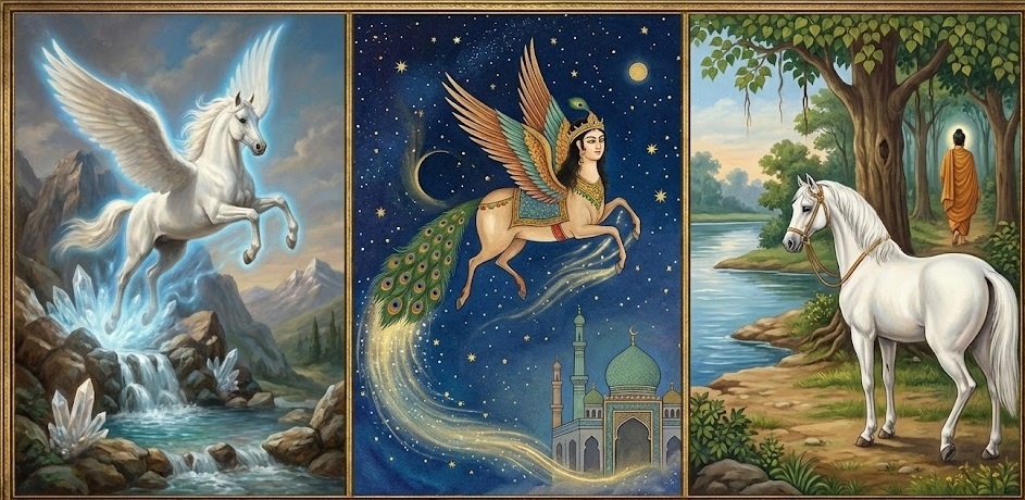 Так в мифологии появились Кони Вознесения. Они не пашут землю и не возят грузы. Их миссия — перенести героя (или пророка) из мира материального в мир горний. Рассмотрим три великие легенды, где конь становится крыльями для человеческого духа.