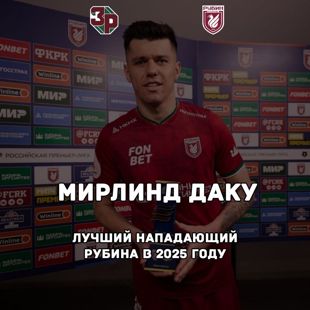 ⚽️ Мирлинд Даку - лучший форвард Рубина в 2025 году по версии Злобного Рубина.