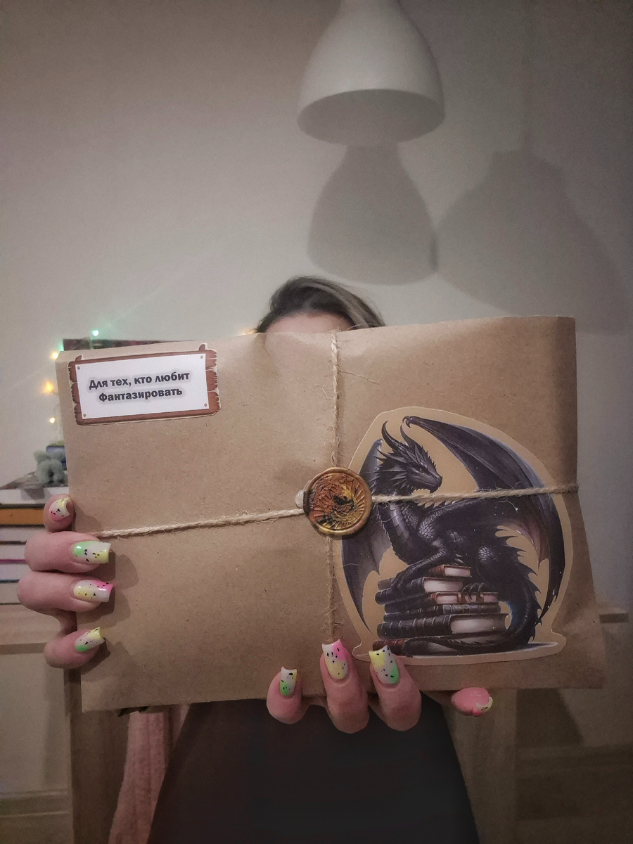 Открываю я тут секретный бокс по Фэнтези. Думаю, а чего он такой пухлый. На картинке - дракон, а я их обожаю, поэтому очень обрадовалась.