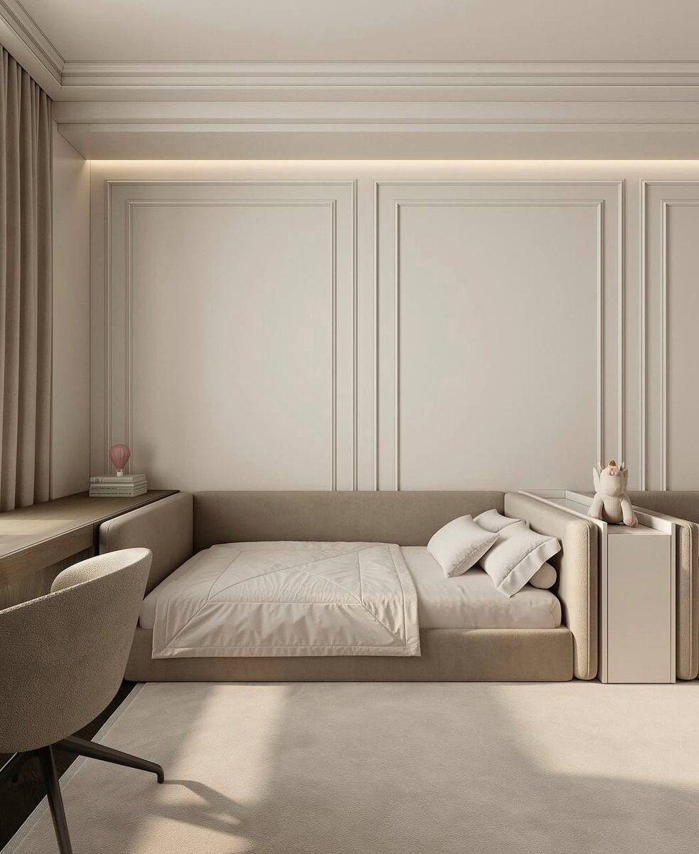 😍 Детская для двух сестричек приведет в восторг не только родителей, но и будущих хозяек. Элегантный, красивый и функциональный интерьер подойдет как малышам, так и подросткам. Под зону сна отведена значительная часть свободного пространства для расположения двух уютных кроватей. Дизайн детской комнаты для двух девочек обязательно должен иметь вместительную систему хранения. В данном проекте она представлена в виде большого, но при этом лаконичного и не утяжеляющего пространство, шкафа. За хранения самых красивых нарядов и других милых сердцу вещиц беспокоиться точно не придётся. 🥇 Перейти в меню Mamka #детскаядлядевочки #детскаядлядвоих #детскаядляребенка