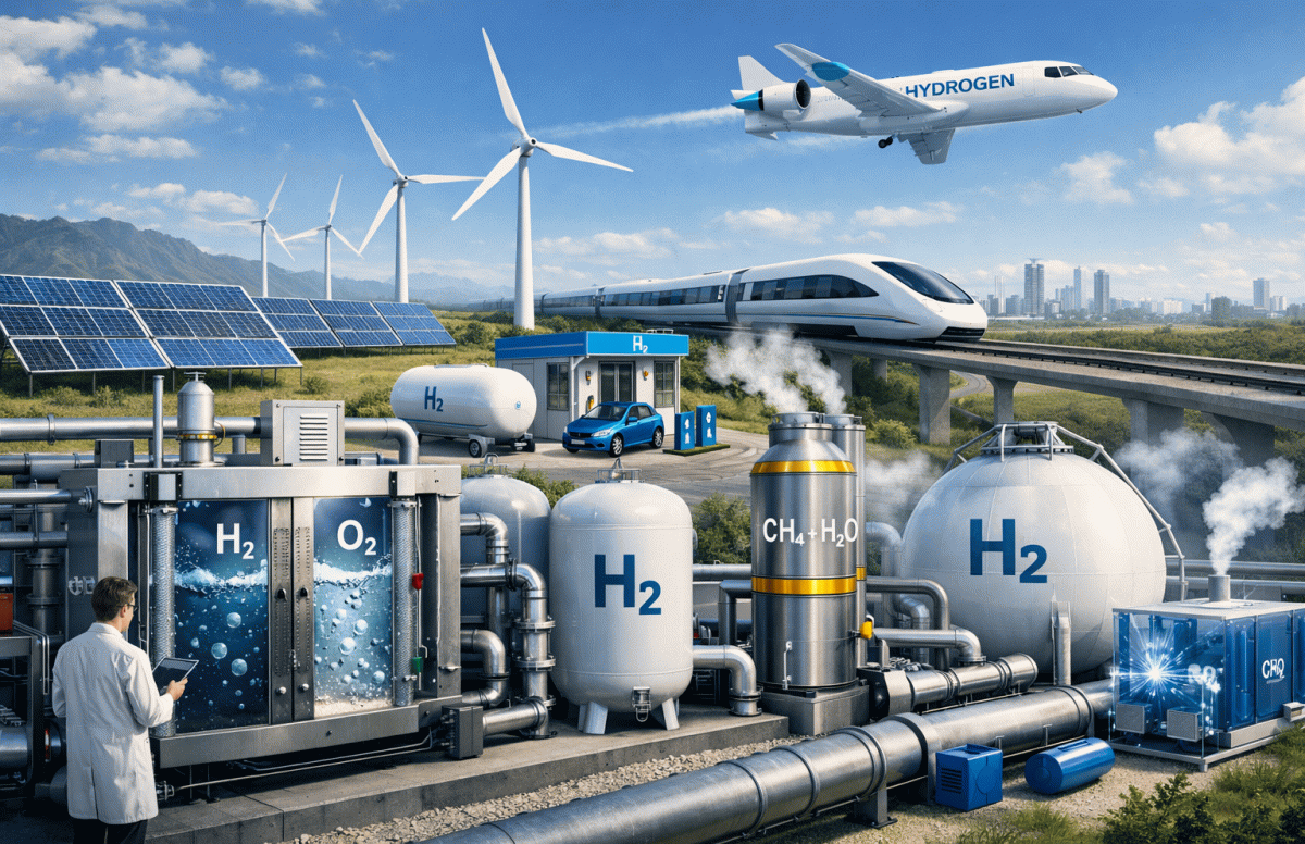 В промышленности акцент переместится от ПКМ к электролизу и «зеленому» водороду, произведенному из ВИЭ. Водород со временем превратится в высокоемкий аккумулятор, решающий проблему энергетического дисбаланса. К примеру, при избытке электроэнергии она перенаправляется установки промышленного электролиза.
