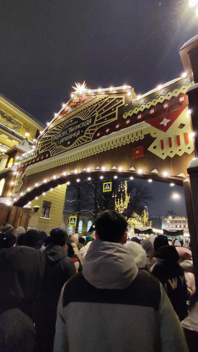 Новогодняя суета уже постепенно сходит на нет, салюты отгремели, а город возвращается к привычному ритму. Но если кажется, что праздник закончился слишком быстро — это не совсем так. В первые дни января Алексей снова вышел гулять по центру Петербурга и заглянул на ярмарку на Манежной площади, чтобы проверить: осталось ли там новогоднее настроение после Нового года. 📍 Где: центр города, метро Гостиный двор 🗓 Когда: ярмарка работает до 11 января ⏰ Время: с 12:00 до 21:00 🎟 Вход: свободный Лучше всего начинать путь вечером с Малой Садовой улицы, со стороны Торгового дома братьев Елисеевых. Даже после праздников она всё ещё выглядит как открытка: гирлянды над головой образуют световой туннель, и рука сама тянется за телефоном — сделать пару снимков на память. Дальше — знакомые новогодние домики. Атмосфера здесь уже спокойнее, чем в декабре, но от этого даже уютнее. Мы неторопливо прошлись вдоль рядов, разглядывая товары без спешки и толп. В продаже по-прежнему можно найти: стеклянные, д