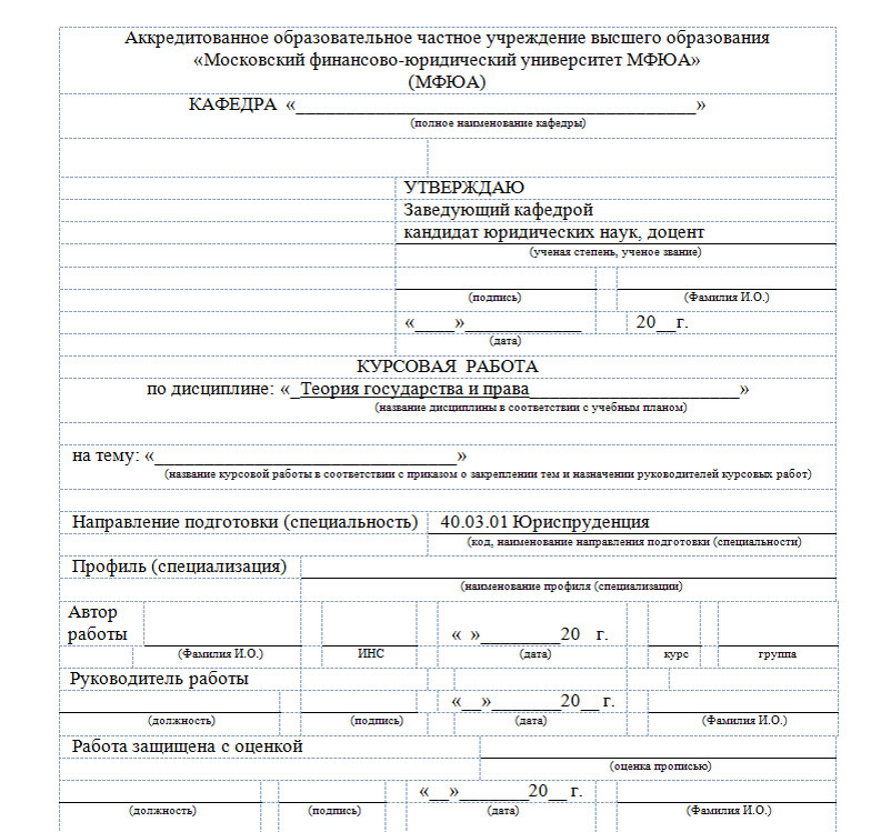 Курсовая работа — неотъемлемая часть учебного процесса в Московском финансово-юридическом университете. Она позволяет студенту продемонстрировать не только глубину понимания выбранной темы, но и умение грамотно структурировать материал, следовать академическим стандартам и оформлять исследование в соответствии с установленными требованиями. Правильное оформление напрямую влияет на оценку и успешность защиты. До момента прочтения статьи, сообщу вам важную информацию - если вам нужна моя консультация по вашей курсовой работе в МФЮА, тогда пишите мне ТГ: https://t.me/ArtMasterRF или звоните/смс/другие мессенджеры: 8(996)2823869 Ниже приведены основные компоненты, которые должны быть соблюдены при подготовке курсовой работы в МФЮА. Титульный лист — первая страница работы, формируемая строго по шаблону университета. На нём указываются: Хотя аннотация в курсовых работах используется не всегда, в отдельных случаях она может быть обязательной. В таком случае она должна кратко отражать суть исс