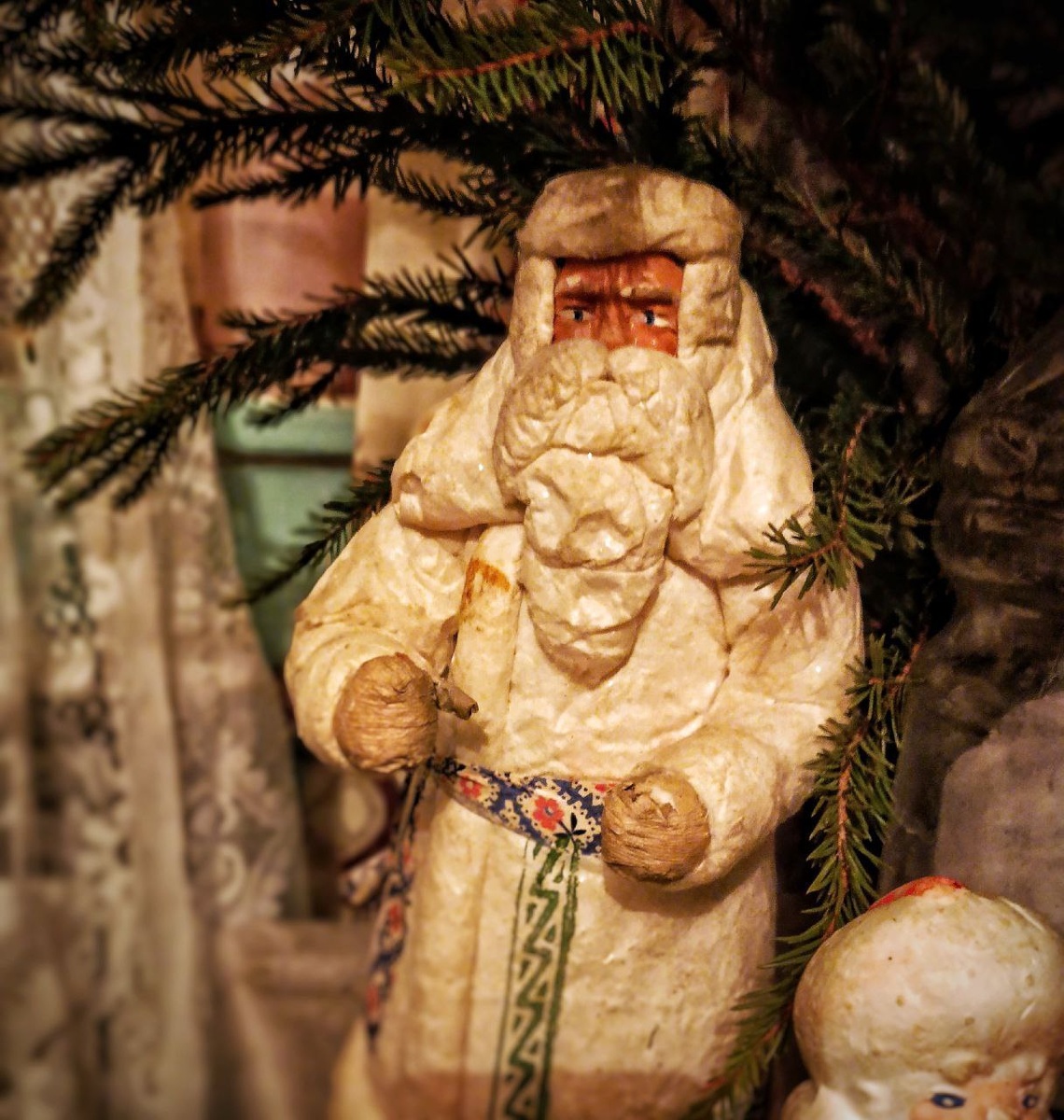 На фото мой "Сталинский ещё" дед мороз из детства. Ему лет 80, наверное. Или больше.