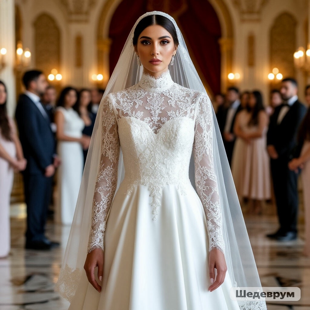 Зарема вошла в зал в белом. Платье было прекрасным в своей строгой простоте — длинные рукава, закрытая горловина, никаких страз, только тончайшее кружево по подолу. Вместо фаты — шелковый платок цвета слоновой кости, скрывавший ее волосы. Она выглядела не как сияющая невеста, а как жрица, идущая на заклание с высоко поднятой головой. Ее красота в этот миг была суровой и печальной.