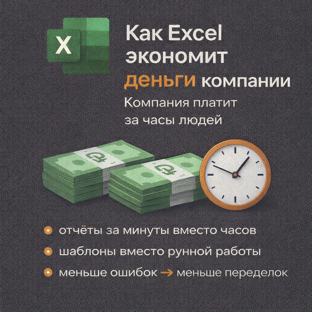 Как Excel экономит деньги компании и почему хорошие таблицы — это не «про аккуратность», а про прибыль. Excel как инструмент экономии: где именно компания теряет деньги и как таблицы превращают время сотрудников в прямую выгоду. Excel редко считают финансовым инструментом. На самом деле он напрямую влияет на: