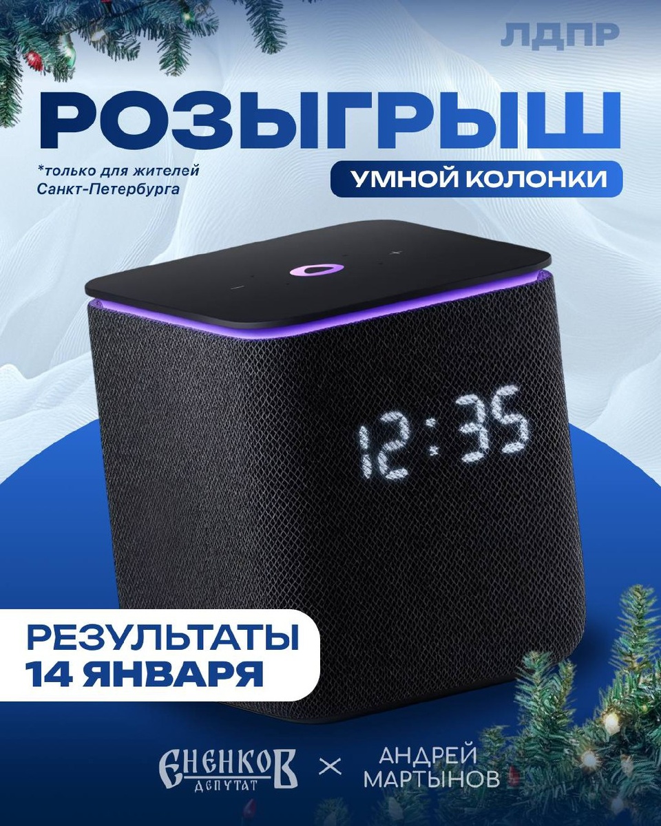 ! Поздравляю всех с наступившим! Пусть 2026-й будет годом решительных действий и настоящих дел. А чтобы старт года был ещё приятнее, запускаю для вас конкурс! Разыграем крутую умную колонку «Яндекс Станция»❤️🔥 Все условия и правила участия в моём сообществе ВКонтакте. 😊 Результаты подведу и объявлю 14 января! Следите за новостями. Депутат ЕНЕНКОВ. Подписаться.