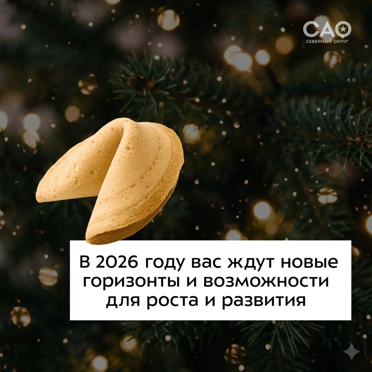 Праздничная ночь позади, но впереди — целый год новых планов и решений. Загадывайте желания и ловите маленькие знаки судьбы. Готовы узнать, что принесет вам наступающий Новый год? 🍪 Перед вами новогодние печенья с предсказаниями — для тёплого начала года. Нажимайте и выбирайте своё. Пусть именно оно станет добрым знаком, который задаст настроение всему 2026 году ⬆️ 📲 Префектура САО теперь в MAX