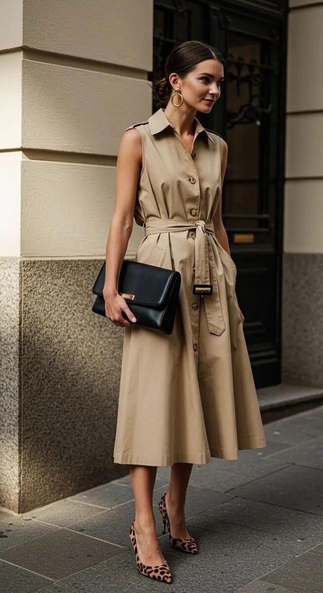- Кожа как акцент. Сумка и обувь - ваш главный инструмент для создания структуры. Темно-шоколадная, черная, темно-зеленая, насыщенно-бордовая кожа мгновенно «приземляет» легкость бежевого, дает ему основу и четкость. Представьте: струящееся бежевое платье-миди и грубые, но идеальные черные кожаные босоножки на плоской подошве. Это уже не «мило», это стильно и уверенно.