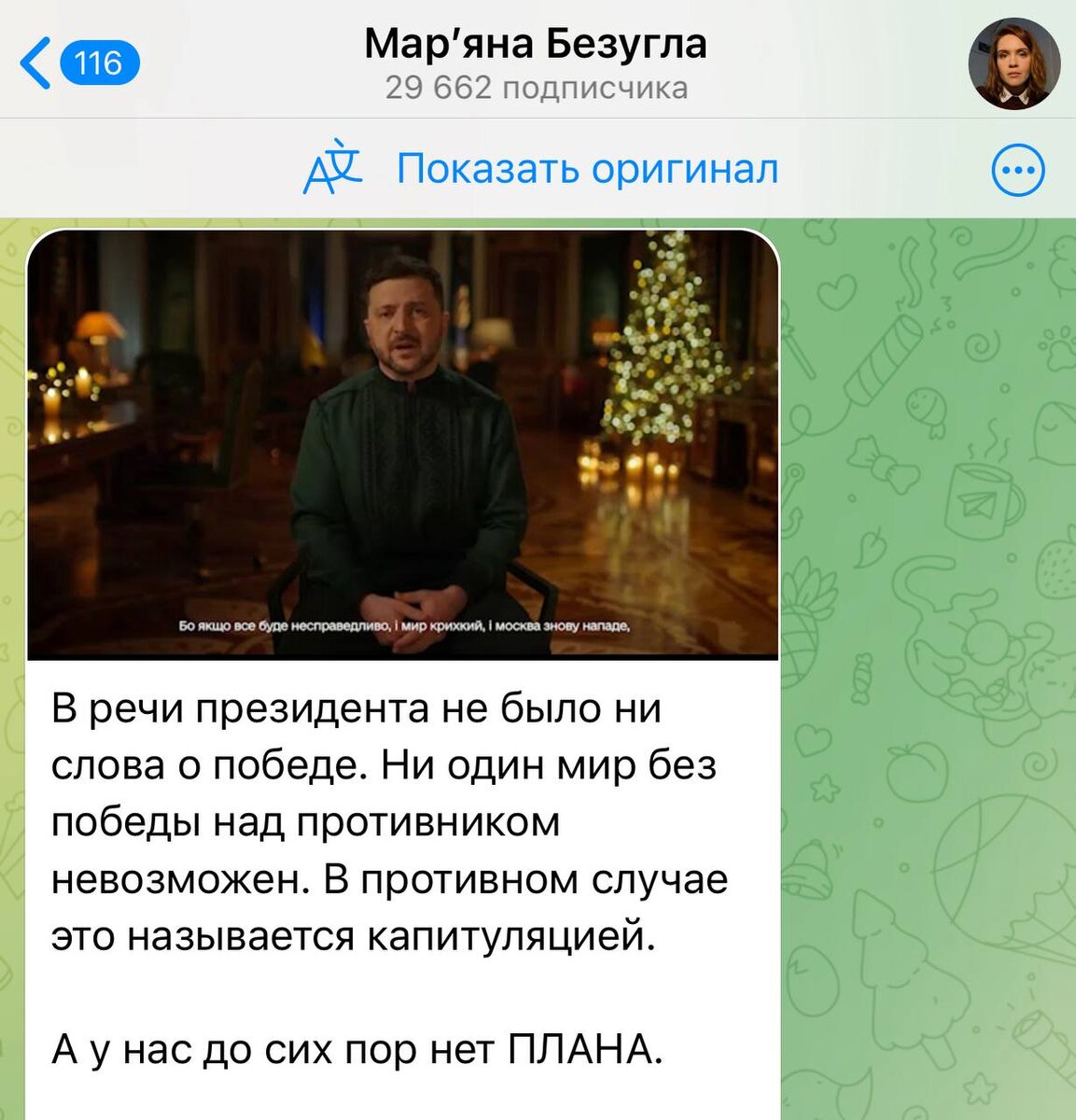 ❗️Нардеп Безуглая заметила, что новогоднем обращение Зеленского не было ни одного слова про «перемогу»
