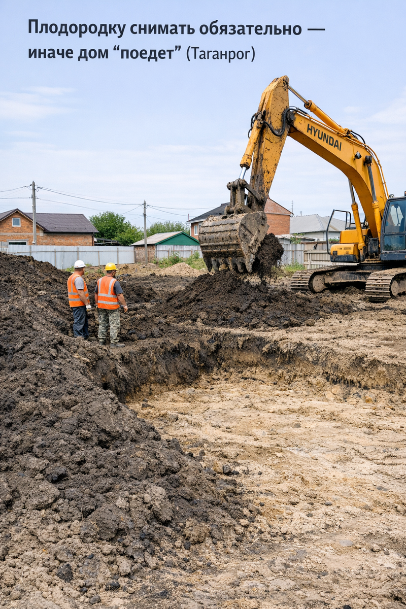 На участке чернозём — красота. Земля мягкая, “живая”, копается легко, травка растёт. И вот тут у многих срабатывает ложная логика: раз земля хорошая, значит и под домом будет хорошо. А потом проходит год-два, и начинаются странные вещи: где-то просела отмостка, где-то “повело” дорожку, дверь стала закрываться туже, на отделке появились мелкие трещинки. И человек не понимает: дом же новый, фундамент же нормальный. Часто причина банальная: плодородка под фундамент осталась на месте. То есть дом поставили на слой, который вообще не предназначен быть основанием. Плодородный слой — это не просто “чёрная земля”. Это смесь: органики,