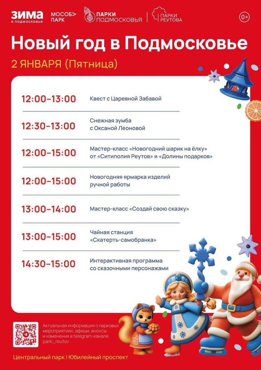 ! 😍 ❤2 января (завтра) встречаемся с вами возле ёлки, чтобы пройти интересный квест, потанцевать и сделать новогоднюю поделку 🐧 ❤3,4 и 6 января ждём вас на семейные старты и мастер-классы 🫐Мастер-классы пройдут в арт-пространстве «За сценой» С Новым годом! 🍊 #паркиреутова 📲 «Мой Реутов» в MAX