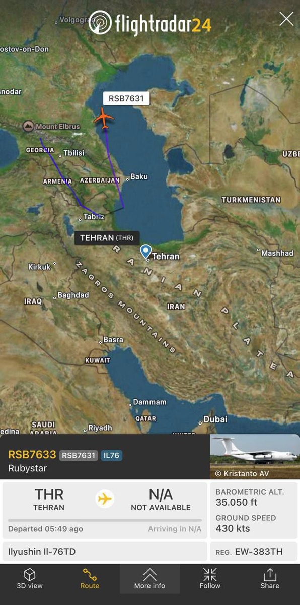 ❗️🗺Ещё один российский грузовой самолёт Ил-76ТД приземлился в Тегеране несколько часов назад