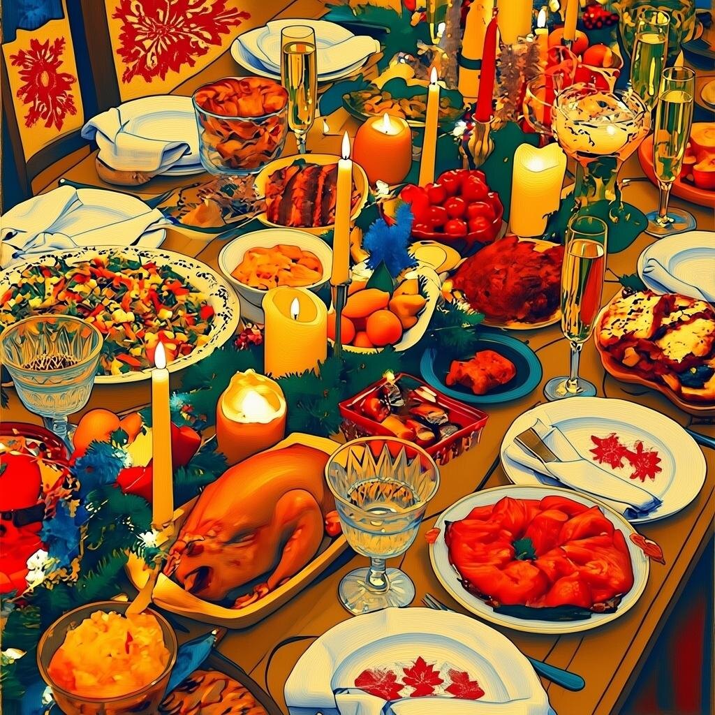 Традиционные блюда на русском новогоднем столе возникли и закрепились в результате сочетания исторических факторов, национальных предпочтений и культурных традиций. Вот основные причины, почему именно эти блюда стали столь важными:
