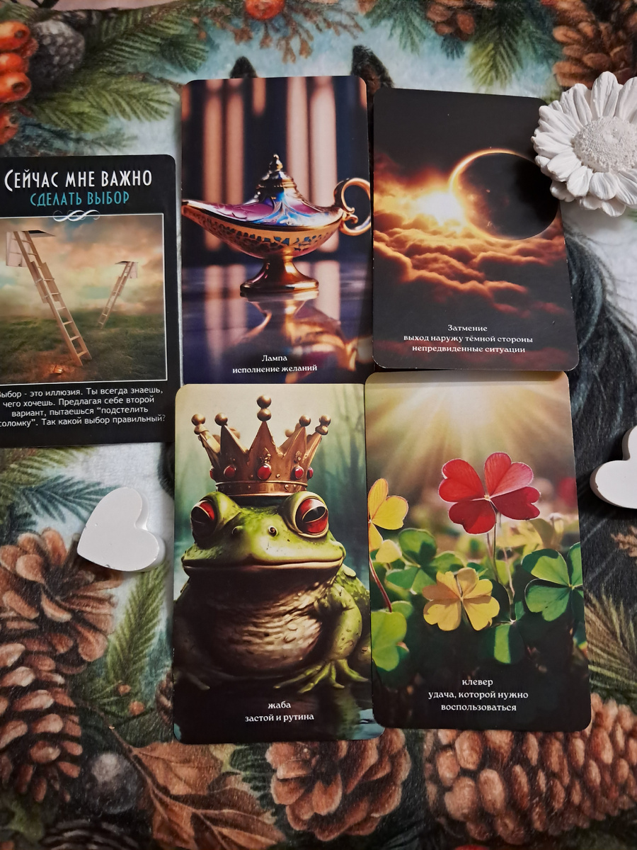 Жаба в этом оракуле — символ токсичных привязанностей, жадности, накопленных обид и страхов. Она указывает на то, что мешает желанию из "Лампы" исполниться чисто и легко.