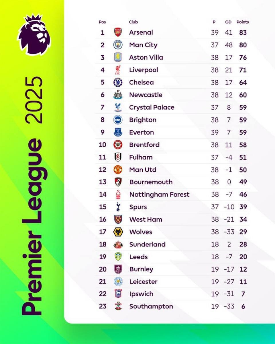 📊 | Таблица АПЛ за 2025-й год: