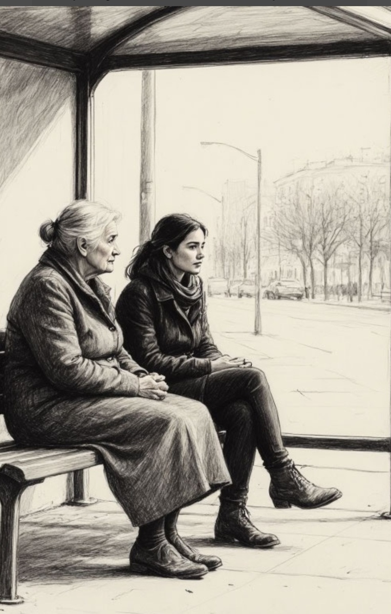 На автобусной остановке в тихом городском сквере сидела Анна Петровна — сухонькая старушка с живыми, чуть прищуренными глазами. Её седые волосы были аккуратно собраны в пучок, а на плечах — тёплый вязаный платок, бережно связанный когда‑то дочерью. Взгляд Анны Петровны скользил по прохожим, пока не остановился на молодой женщине, что стояла неподалёку.