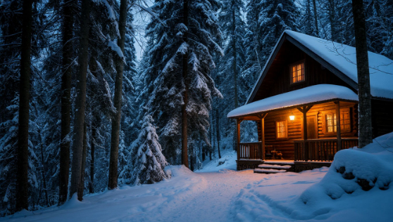 Огонёк приближался. Это оказалось не окно, а фонарь на крыльце небольшой, аккуратной избушки. Из трубы шёл дымок. Рядом стояла высокая мачта с антеннами, а у забора – снегоход.