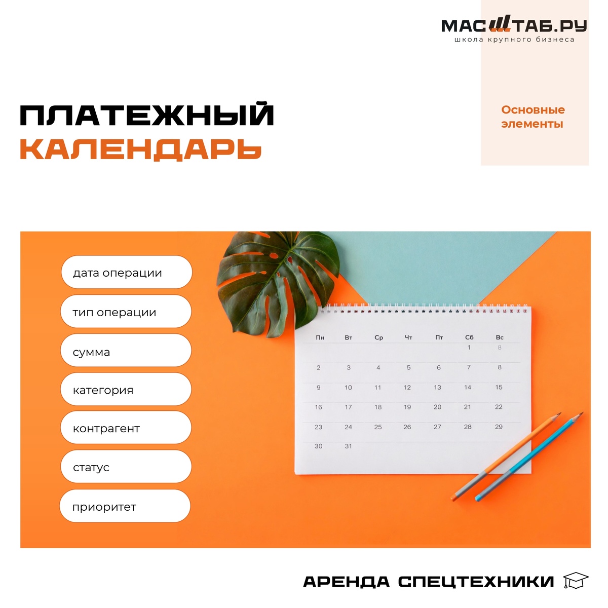 Платёжный календарь в компании по аренде строительной техники и оборудования — это детализированный план предстоящих финансовых поступлений и платежей, распределённый по датам и статьям затрат. Он помогает избежать кассовых разрывов, своевременно выполнять обязательства перед контрагентами, контролировать денежные потоки и принимать обоснованные управленческие решения. Задачи: В такой компании в платёжном календаре могут фигурировать специфические статьи расходов и поступлений: Также важно учитывать сезонность спроса на аренду техники, которая может влиять на поступления. Например, в строительный сезон доходы могут расти, а в зимний период — снижаться. Платёжный календарь — ключевой инструмент финансового управления, который особенно важен для компаний с длительными циклами работы и зависимостью от своевременных платежей, как в случае с арендой строительной техники и оборудования. Записывайтесь на курс, узнаете детализацию UNIT экономики бизнеса аренды строительной техники и обору