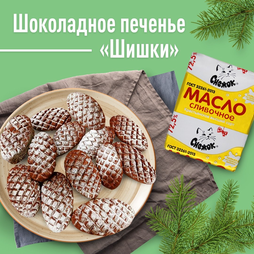 только необычное, но и изумительно вкусное. ✅Ингредиенты: Тесто: Мука - 300г Сливочное масло «Снежок» – 120 г Молоко «Снежок» 2,5% - 3 ст.л сахар - 4 ст.л. яйцо – 1 шт 2 ст.л. сахарной пудры соль - 0,5 ч.л Какао-порошок - 2 ст.л Разрыхлитель теста - 3г 💫Приготовление: 1. Смешайте растопленное сливочное масло с сахарной пудрой, сахаром и солью. 2. Добавьте молоко, яйцо и какао - порошок смешать до однородности. 3. Муку просейте, смешайте с разрыхлителем. Замесите тесто, накройте пищевой плёнкой и отправьте в холодильник на 30 минут. 4. Разделите тесто на кусочки и сформируйте из них овальные заготовки. 5. Ножом сделайте узоры на заготовках и выложите на противень, застеленный пергаментом. Выпекайте печенье 15 минут в духовке, разогретой до температуры 180 °C. 6. Готовое печенье можно украсить сахарной пудрой.